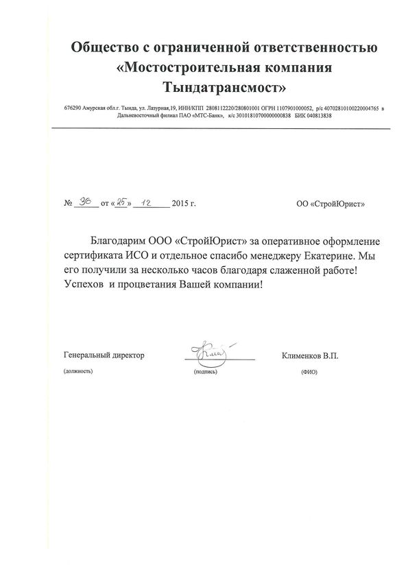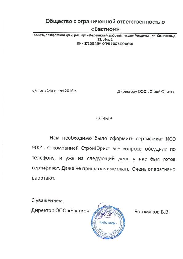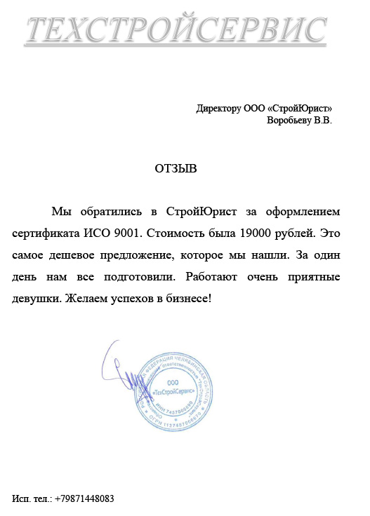 Отзывы клиентов "СтройЮрист" по ISO в Абакане