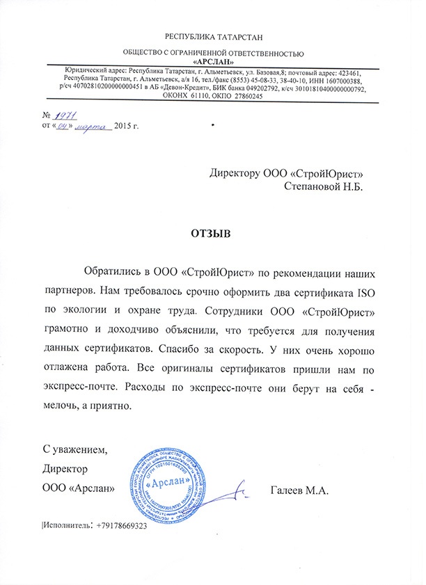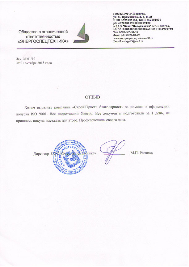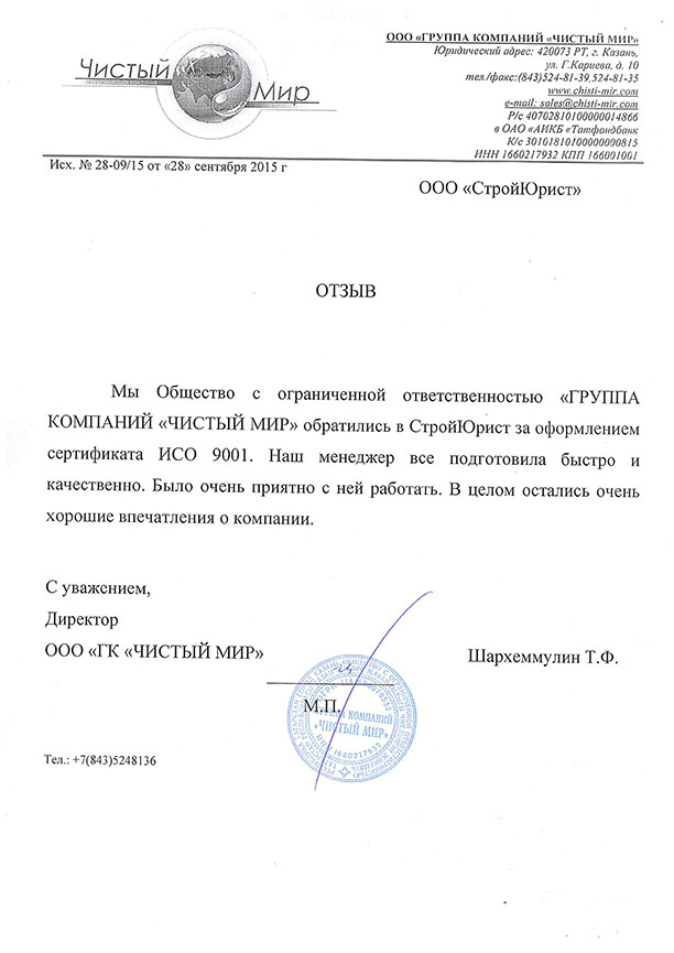 Отзывы клиентов "СтройЮрист" по ISO в Абакане