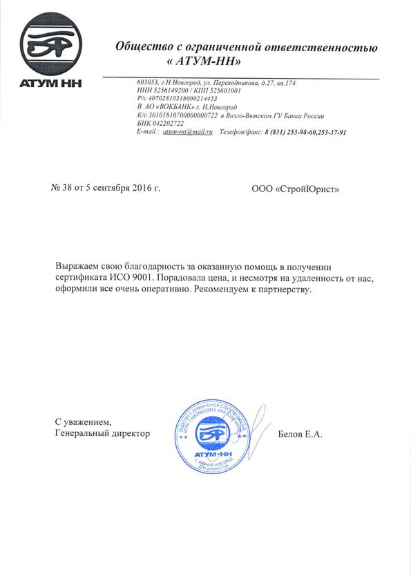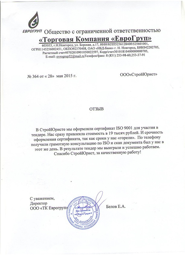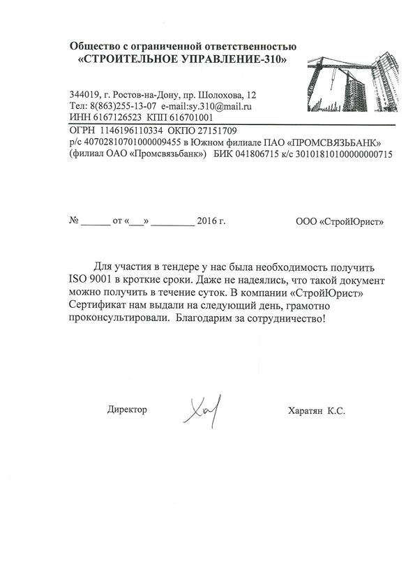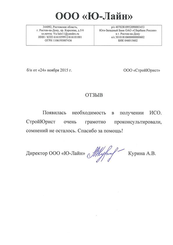 Отзывы клиентов "СтройЮрист" по ISO в Абакане