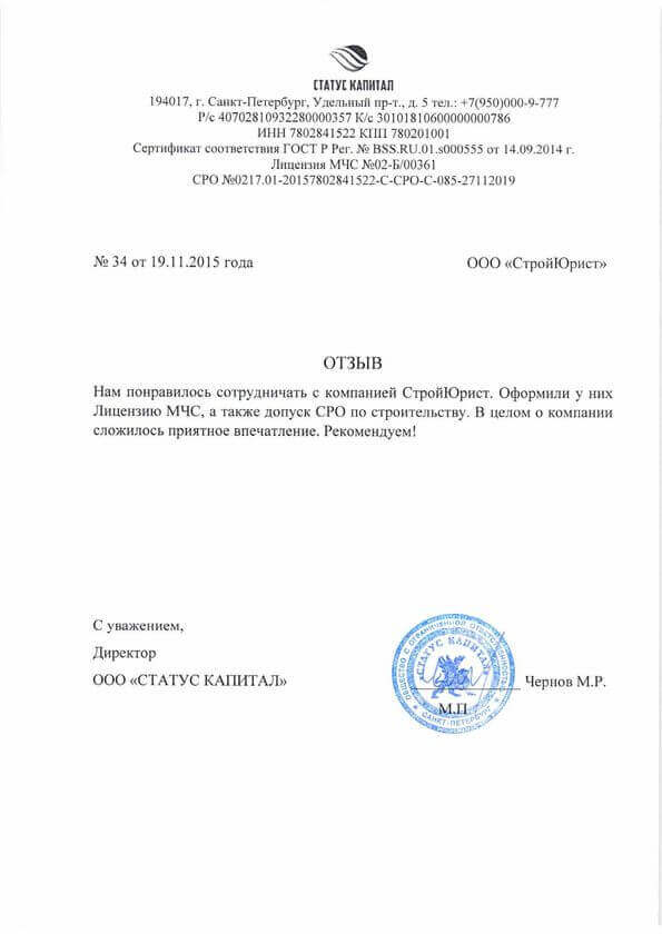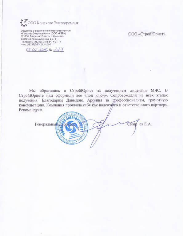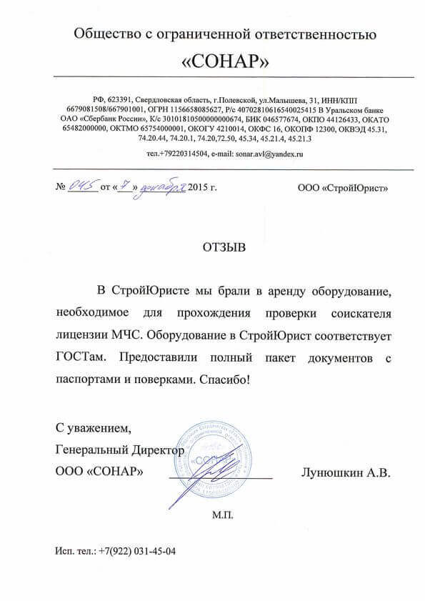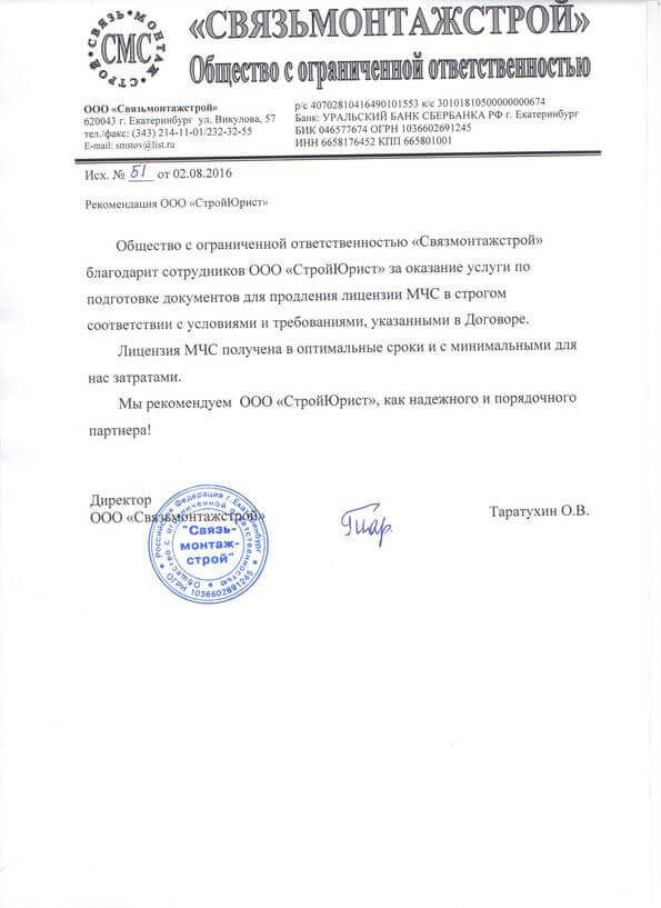Отзывы клиентов "СтройЮрист" по лицензированию МЧС в Абакане