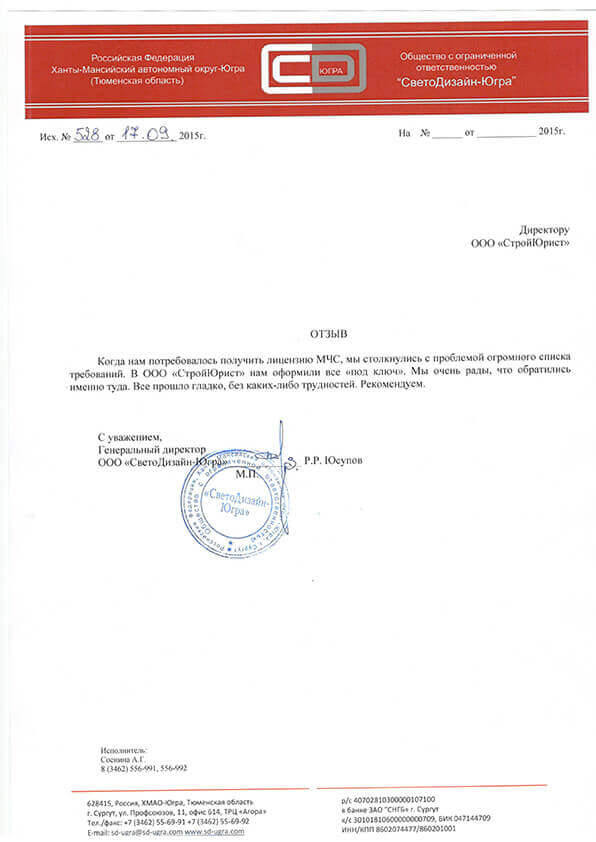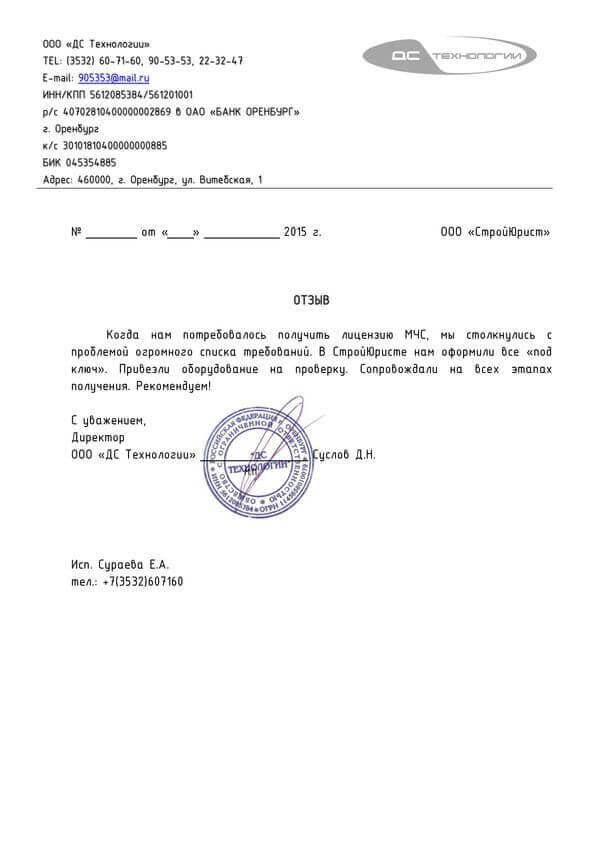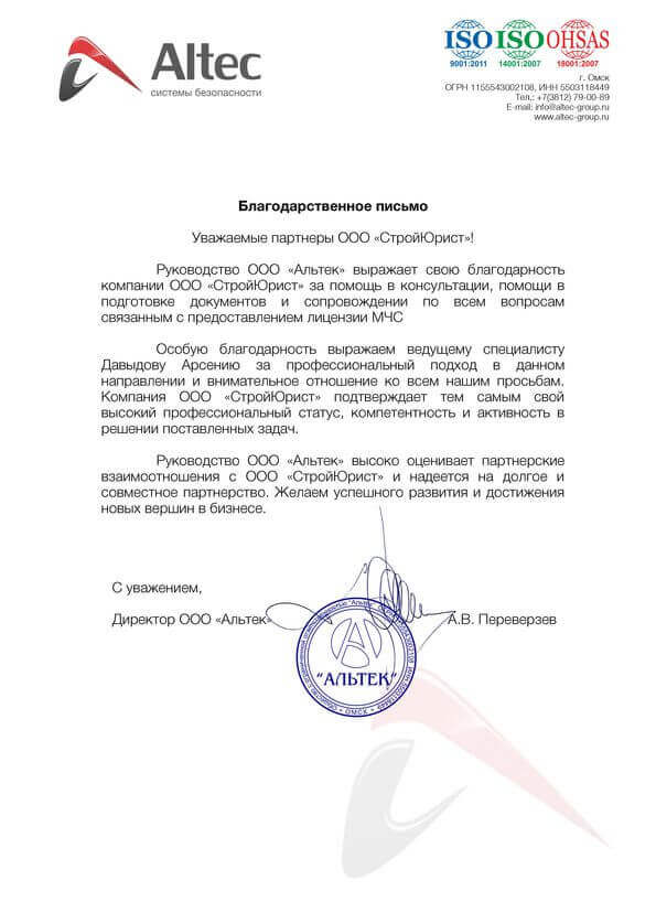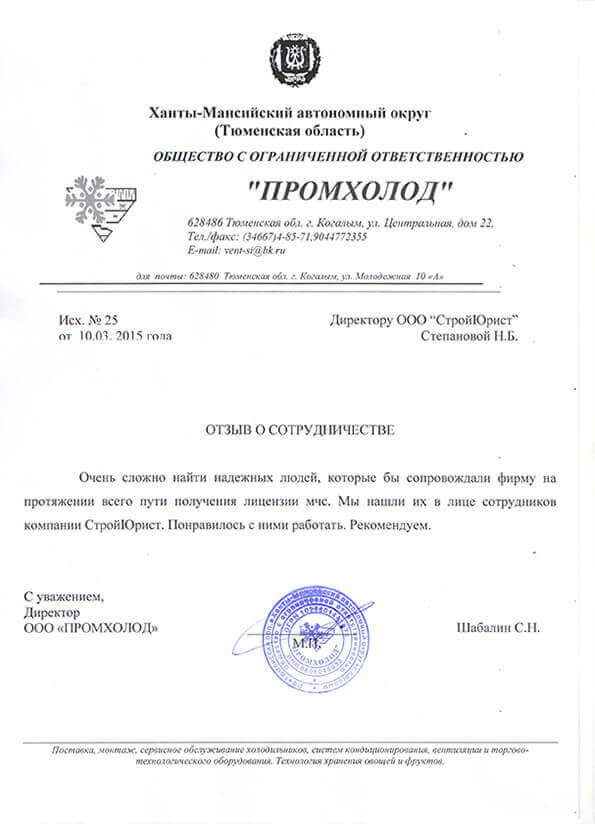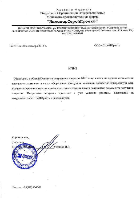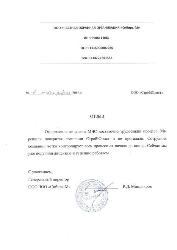 Отзывы клиентов "СтройЮрист" по лицензированию МЧС в Абакане