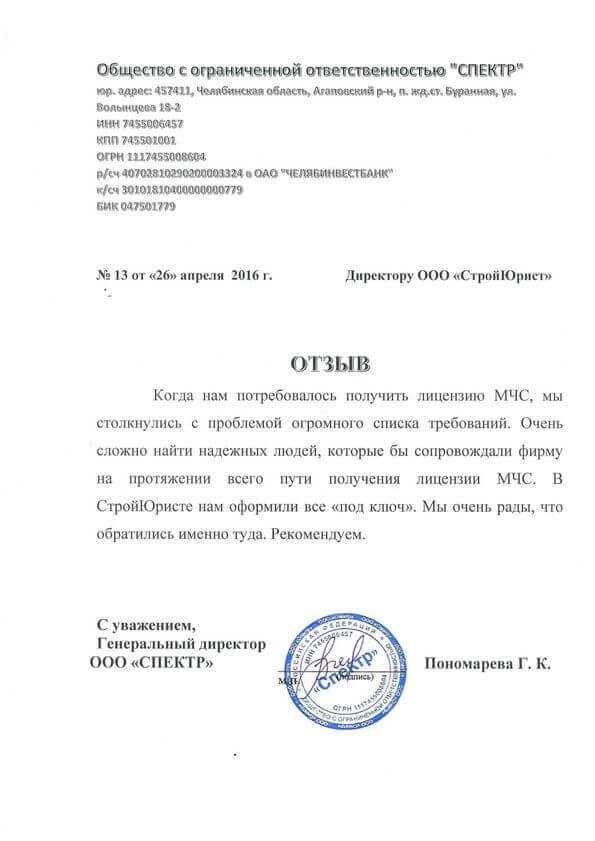 Отзывы клиентов "СтройЮрист" по лицензированию МЧС в Абакане