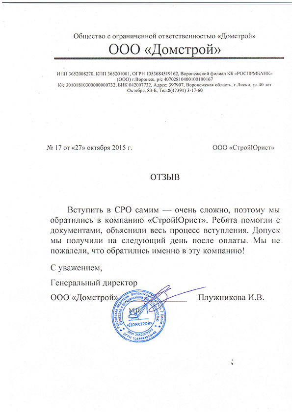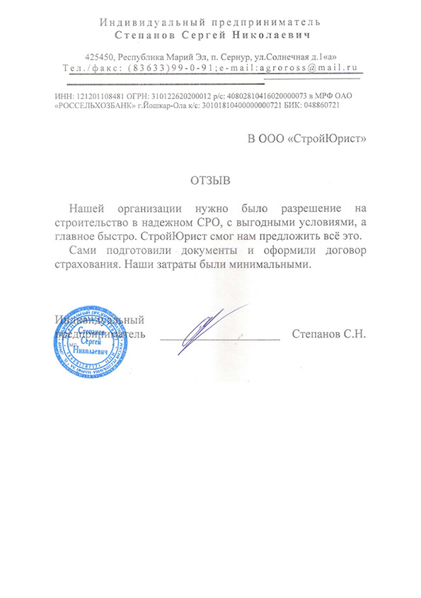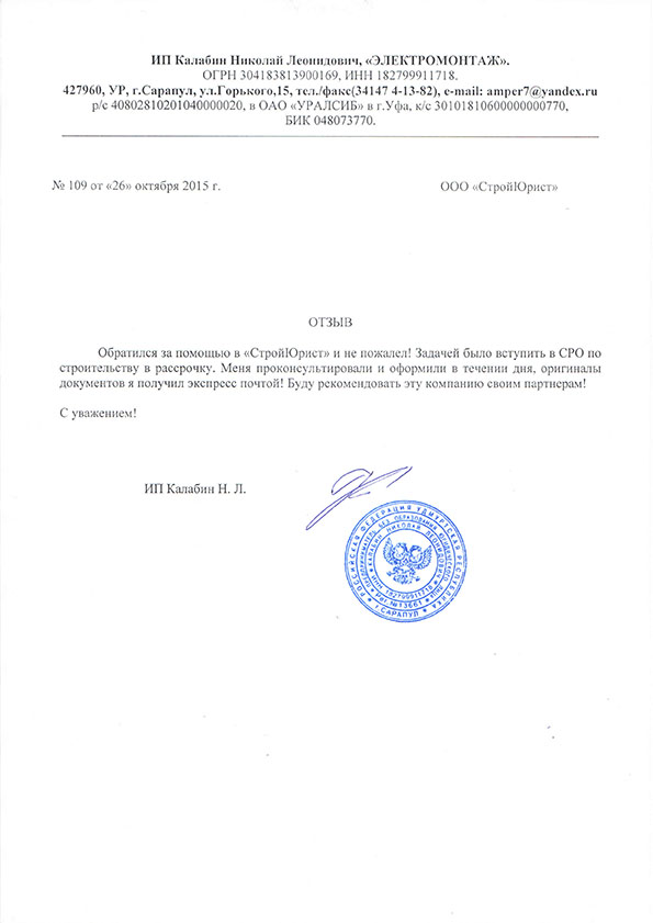 Отзывы клиентов "СтройЮрист" по вступлению в СРО в Абакане