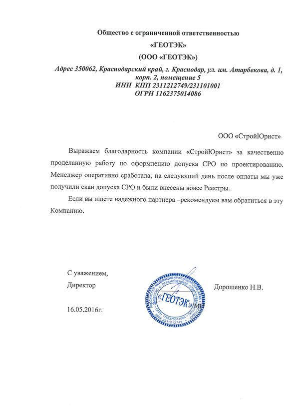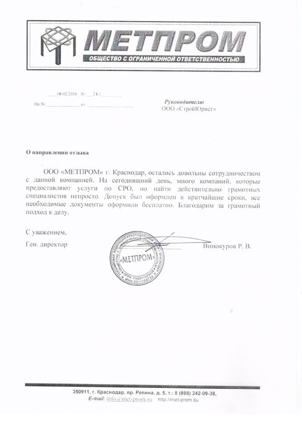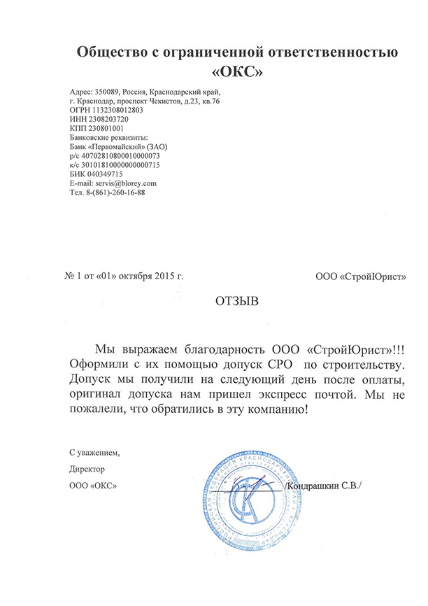 Отзывы клиентов "СтройЮрист" по вступлению в СРО в Абакане
