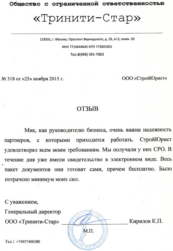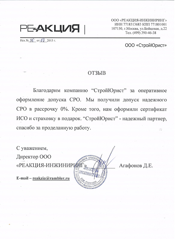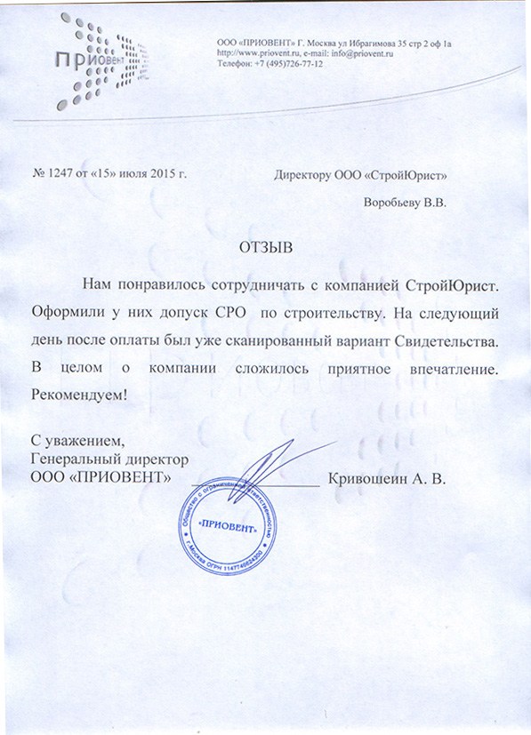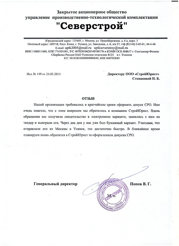 Отзывы клиентов "СтройЮрист" по вступлению в СРО в Абакане