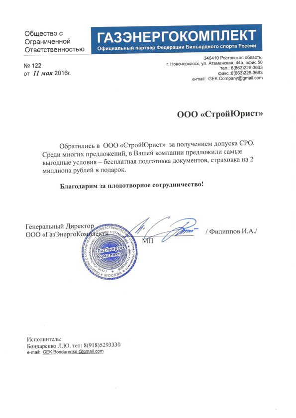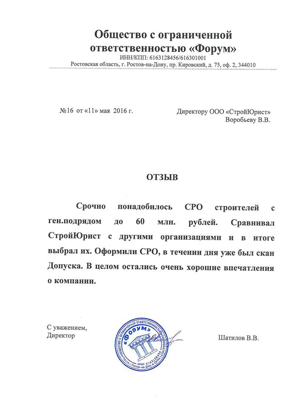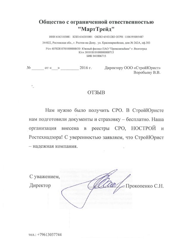 Отзывы клиентов "СтройЮрист" по вступлению в СРО в Абакане