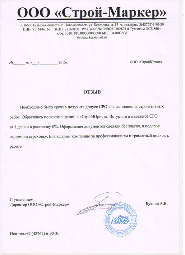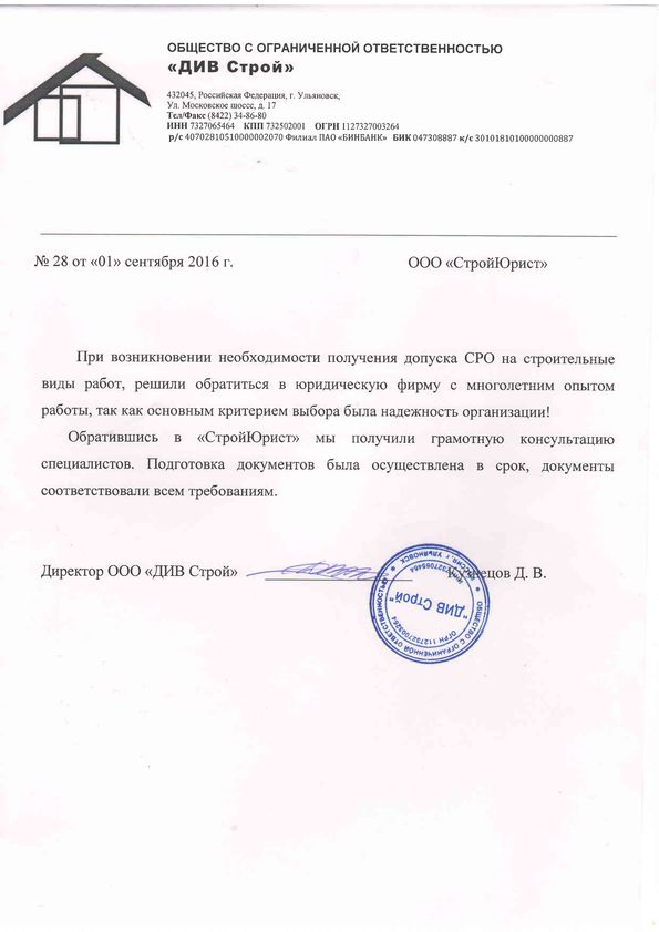 Отзывы клиентов "СтройЮрист" по вступлению в СРО в Абакане