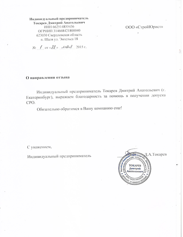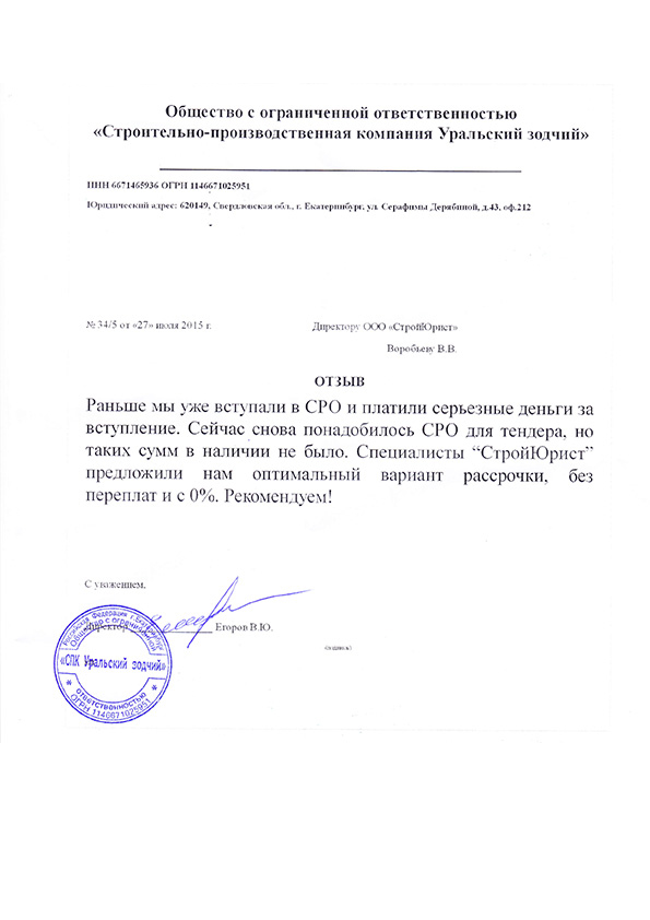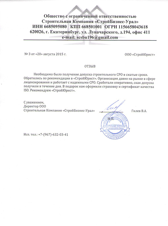 Отзывы клиентов "СтройЮрист" по вступлению в СРО в Абакане