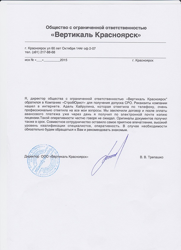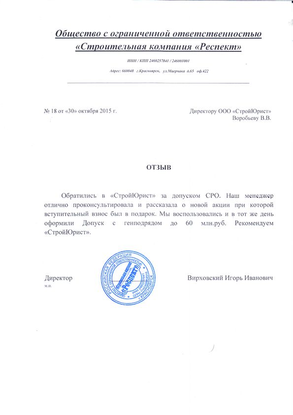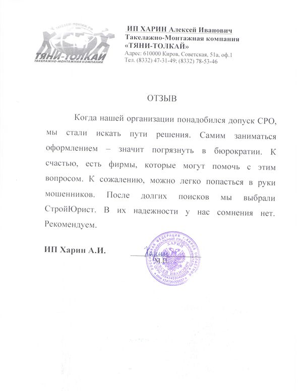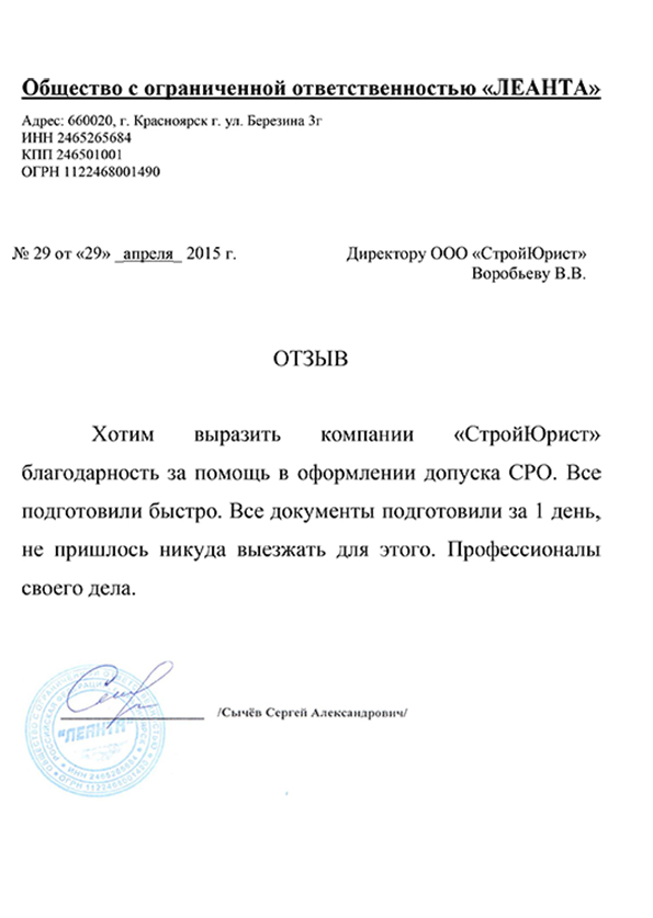 Отзывы клиентов "СтройЮрист" по вступлению в СРО в Абакане
