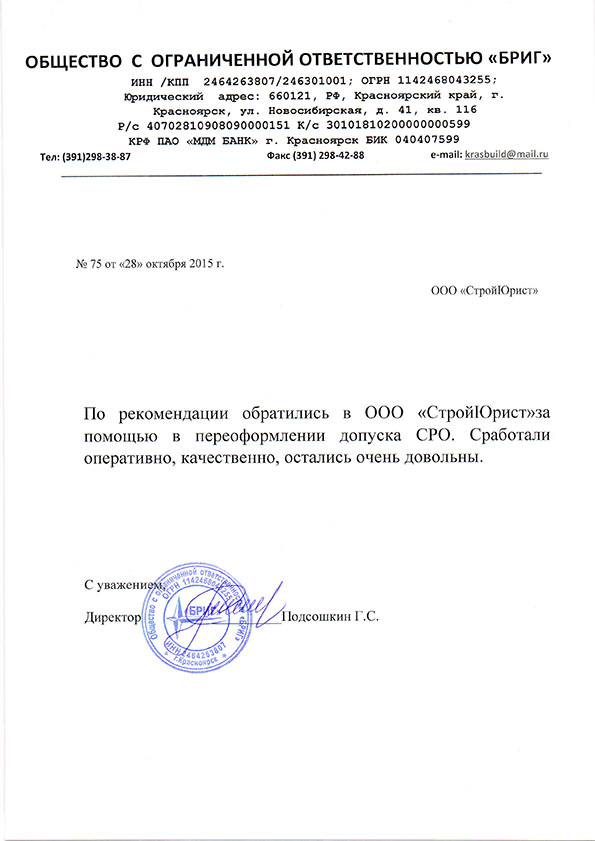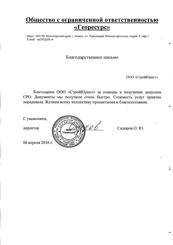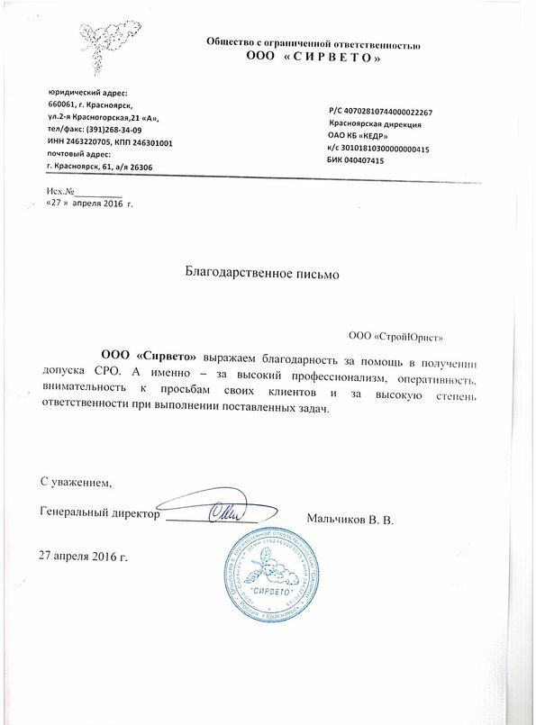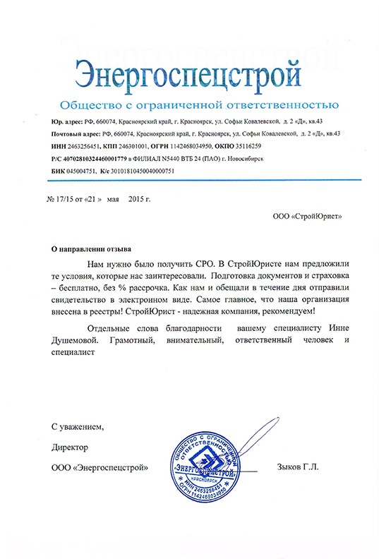 Отзывы клиентов "СтройЮрист" по вступлению в СРО в Абакане