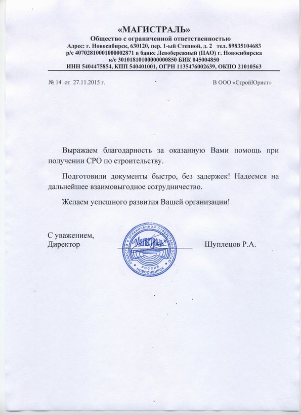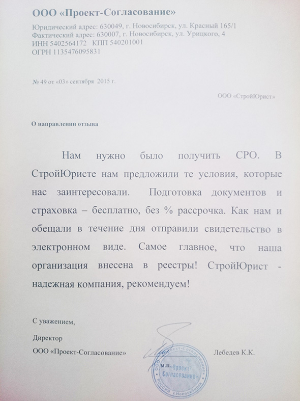 Отзывы клиентов "СтройЮрист" по вступлению в СРО в Абакане