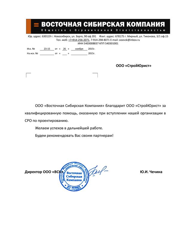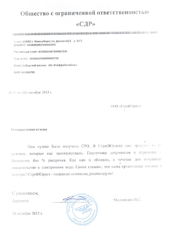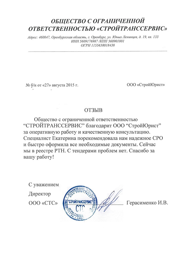 Отзывы клиентов "СтройЮрист" по вступлению в СРО в Абакане