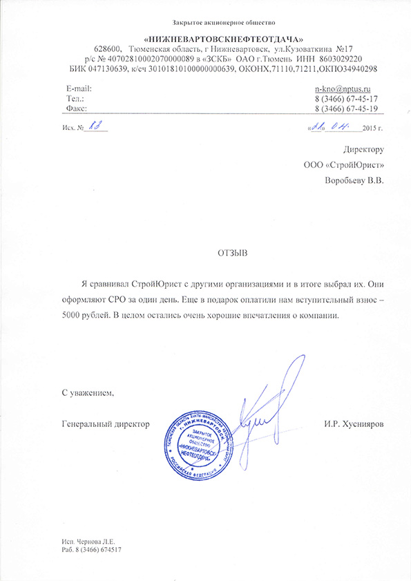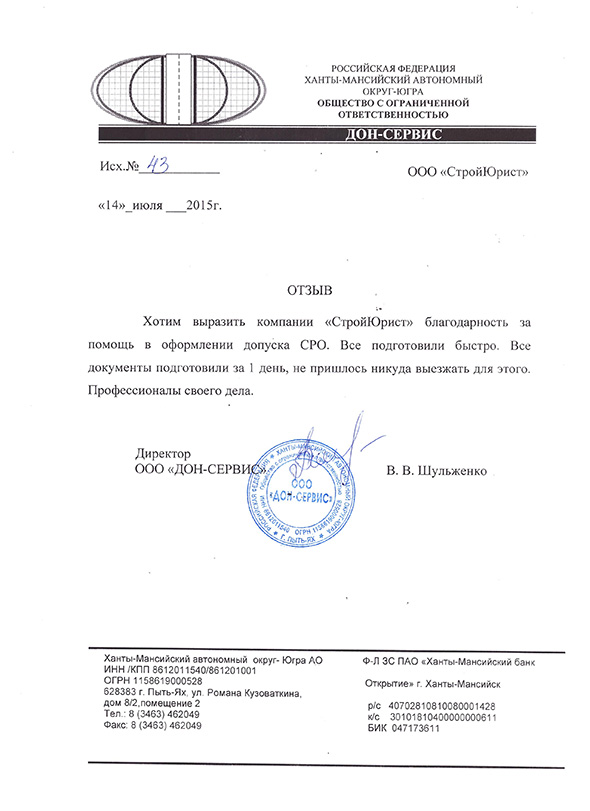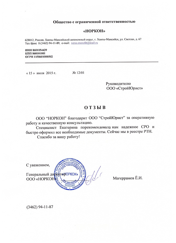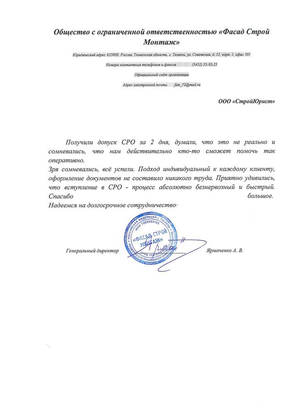 Отзывы клиентов "СтройЮрист" по вступлению в СРО в Абакане