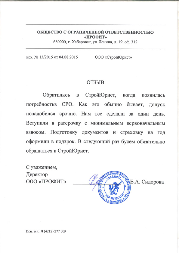 Отзывы клиентов "СтройЮрист" по вступлению в СРО в Абакане