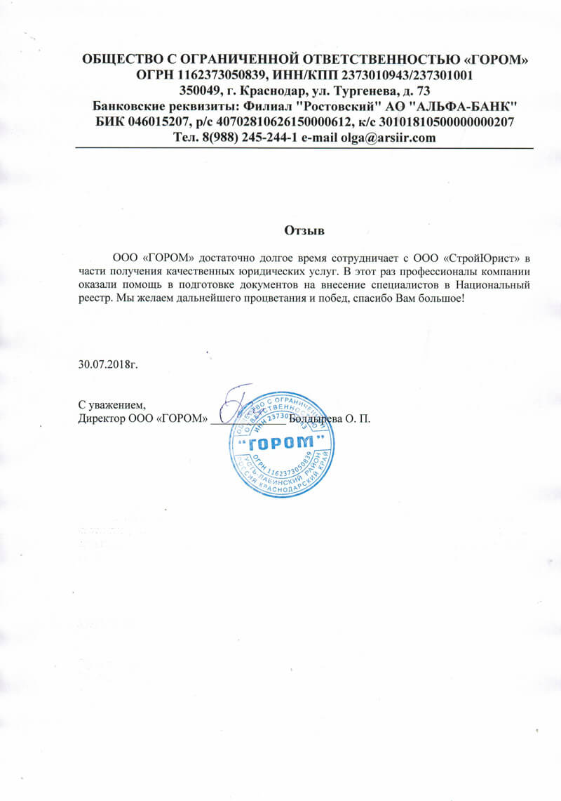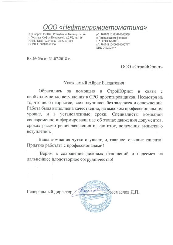 Отзывы клиентов "СтройЮрист" по вступлению в СРО в Абакане