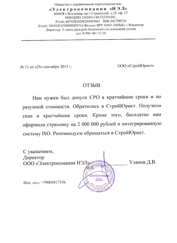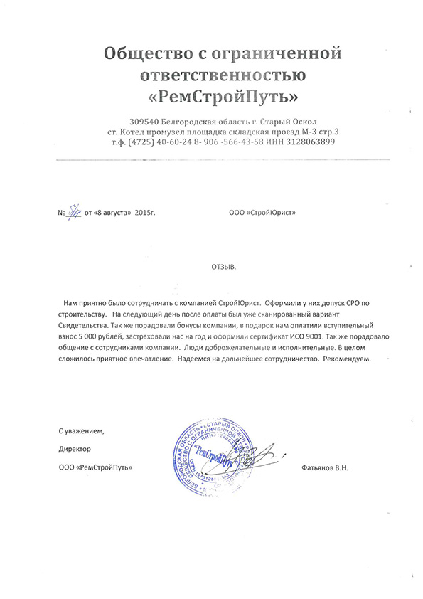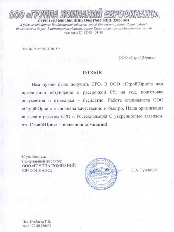 Отзывы клиентов "СтройЮрист" по вступлению в СРО в Абакане